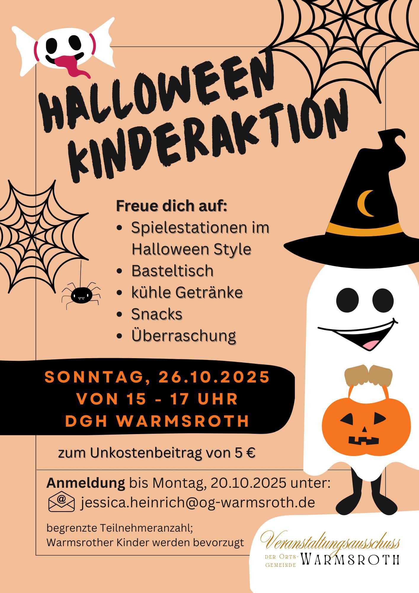 Am Sonntag, den 26.10.2025, fand im Dorfgemeinschaftshaus von 15-17 Uhr eine Halloween Kinderaktion statt (nähere Informationen). - 17.-20.10.2025