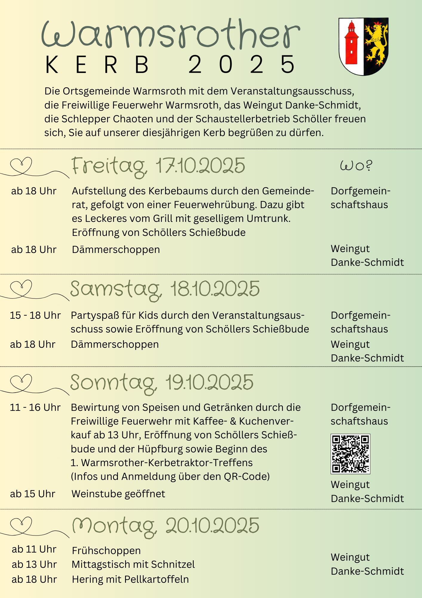 Am Wochenende vom 17.-20.10.2025 fand die diesjährige Warmsrother Kerb statt. Aktivitäten entnehmen Sie bitte dem Programm - Warmsrother Kerb 2025. - 18.10.2025