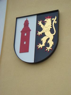 Unser Gemeindewappen hat die Form eines Schildes, das in der Mitte senkrecht geteilt ist.